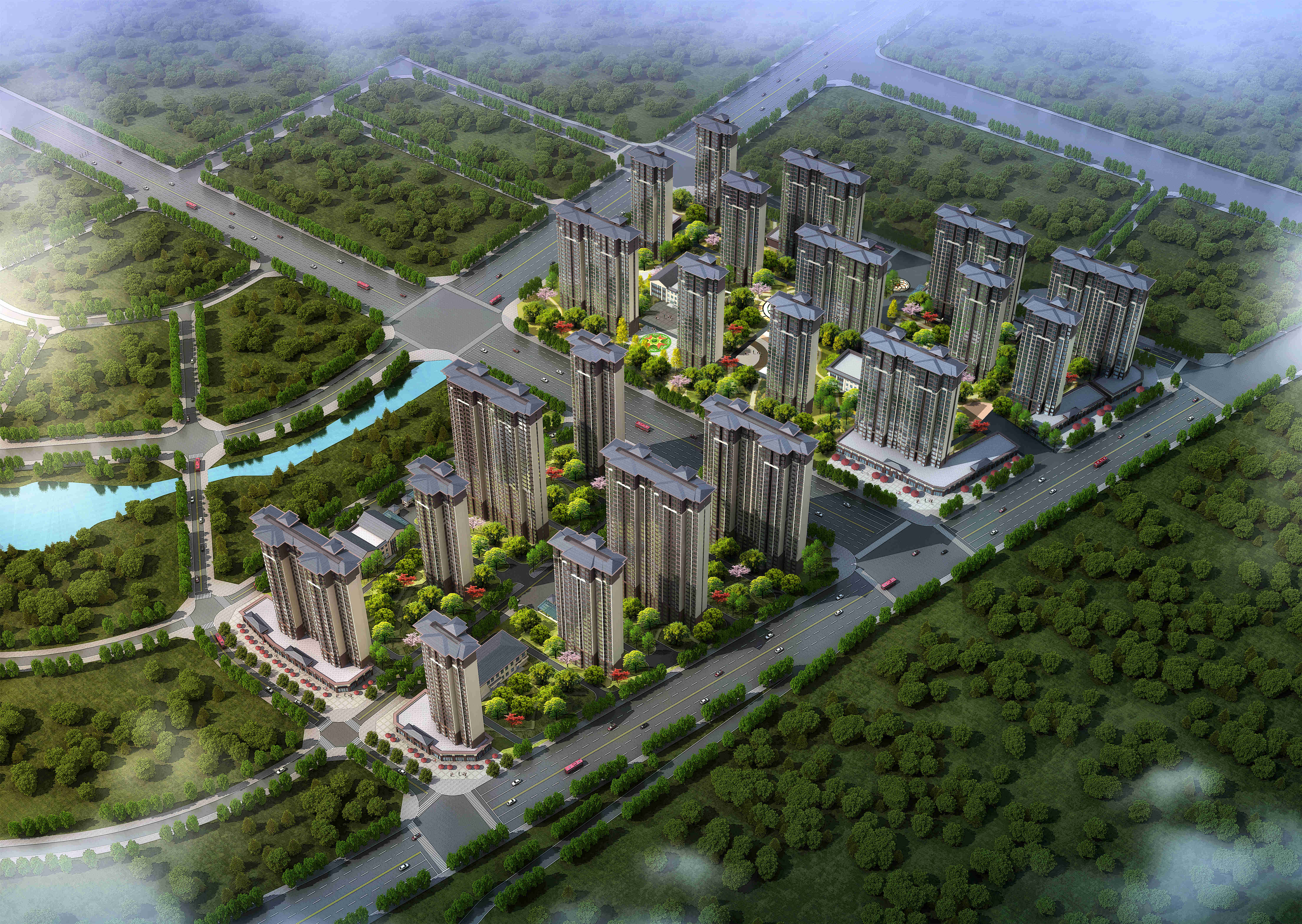 項目位于洛陽市洛龍區,主要內容為安置房住宅、配套商業、物管及配套用房、地下車庫等主體工程建筑、裝飾、安裝等,以及安置房小區內道路、綠化、給排水、供配電和其他配套設施。項目由兩個片區、三個地塊、23個單體組成,其中9+8棟高層,總占地面積103241.54㎡,總建筑面積539003㎡。