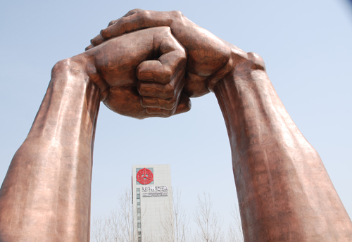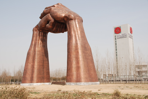 《禮儀之門》安裝地點:西四環連霍高速溝趙收費站對面  雕塑30米,材質:鍛銅。“抱拳禮”是中華傳統禮儀風范的一種禮貌動作,含有尊重、歡迎的寓意。以“抱拳禮”為原型的30米高雕塑《禮儀之門》有望成為鄭州新地標。